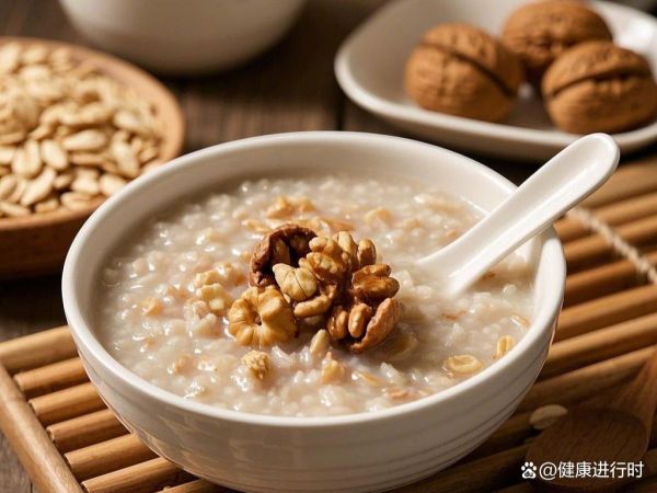 核桃燕麦粥营养丰富,饱腹感强。燕麦富含膳食纤维,能促进肠道蠕动;核桃中的油脂则能增加粥的口感和香气。这款粥适合作为早餐或晚餐,为身体提供能量。