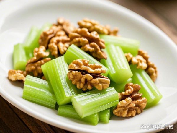 核桃炒西芹口感清爽,色彩搭配美观。西芹富含维生素和膳食纤维,具有降压、降脂的作用;核桃则为这道菜增添了坚果的香气和营养。
