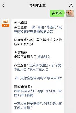 温馨提示:微信搜索公众号常州本地宝,关注后在对话框回复【苏康码】可获我的常州苏康码下载指南,常见问题解答,老人小孩操作流程,黄码转绿码指南。