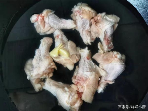 2、锅中放水,翅根随冷水下锅,大火煮开,煮出血水浮沫后,捞出,清洗干净浮沫,沥干水分备用。