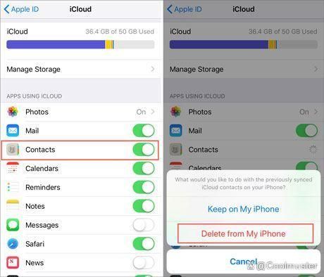 iCloud 是苹果用户常用的联系人同步工具。如果您的两台 iPhone 上均启用了 iCloud 通讯录,则您的联系人将在其他 iPhone 上可见。但是,如果您不想再共享这些联系人,您可以禁用联系人同步。