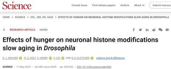 ①K. J. Weaver et al. ,Effects of hunger on neuronal histone modifications slow aging in Drosophila.Science380,625-632(2023).DOI:10.1126/science.ade1662