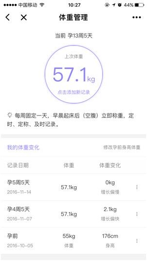 孕期体重实时记录 私人健康监管
