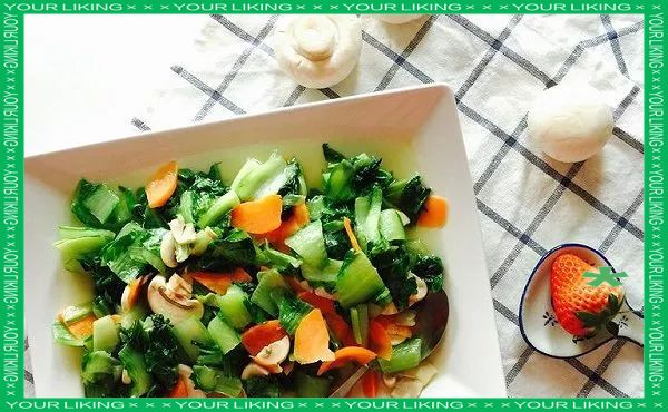 青菜、口蘑、胡萝卜各适量,植物油、盐适量。