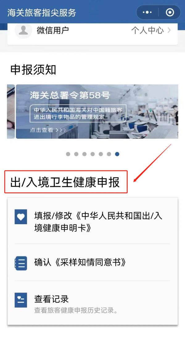 第二步:点击“出入境卫生健康申报”中的“填写/修改《中华人民共和国出/入境健康申明卡》”,如实填写信息即可完成申报!
