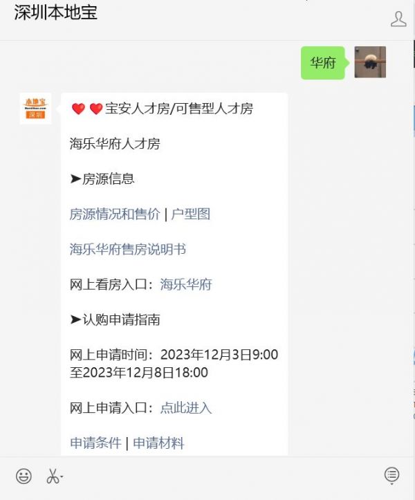 温馨提示:微信搜索公众号【深圳本地宝】,关注后在对话框回复【华府】获取宝安海乐华府人才房地址、售价、三房户型图和看房入口、认购申请时间、申请入口和申请条件、材料清单等