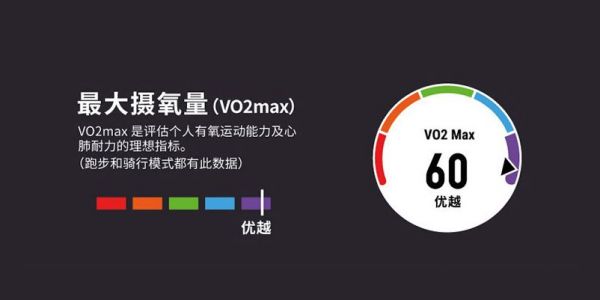 最大摄氧量是心血管健康的一项指标,随着健康水平的提高而提高。是指在人体进行最大强度的运动,当机体出现无力继续支撑接下来的运动时,所能摄入的氧气含量。作为耐力运动员的重要选材依据之一,是反映人体有氧运动能力的重要指标,高水平最大摄氧量是高水平有氧运动能力的基础,另外跑步最大摄氧量值和其它项目最大摄氧量值是不相同的,因为每项运动用到的肌肉对摄氧量有不同的要求,身体会对各项运动消耗不同的氧气,并因运动而产生不同程度的消耗,在高温高湿环境或者高海拔的条件下开始训练时,最大摄氧量会出现自然下降,但Garmin设备在你进行这种条件下进行训练时,会出现人性化的自动调整,给出你当下条件的身体状态,在运动过程中,Garmin通过你最近一周的训练负荷的平均值,来做出效益指标的评判,Garmin会通过分数的增加或减少来影响最大摄氧量的数值,同时也可以通过最大摄氧量来做出成绩预测。