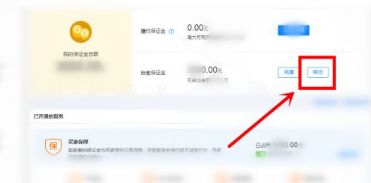 4、这里,就可以看到右边详情中,显示已缴纳的保证金,点击【转出】。