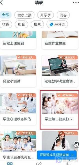 第五步,发布之后,就成功让学生每日健康打卡了,如下图所示: