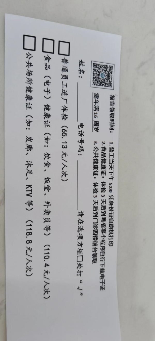 ⏰ 注意事项:体检时间为早上8:00-11:00,拿报告时间在下午五点左右。请注意,下午五点半三楼下班,无法打印报告,也就拿不到健康证了。