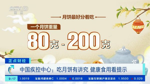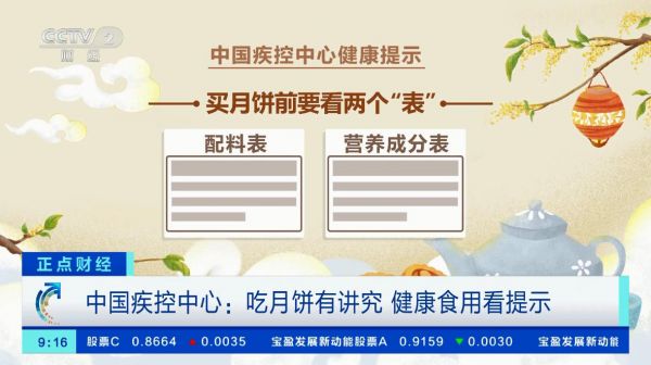(央视财经《正点财经》)虽然月饼味美,但怎样吃才健康呢?中国疾控中心发布月饼健康食用提示。