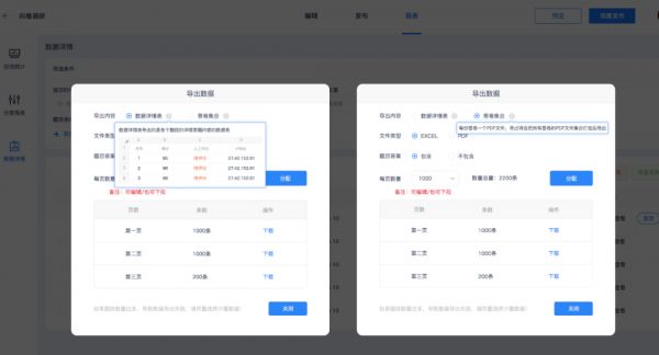 作为创建人,你可以在龙艺秀的“数据详情”页面上一键下载您的数据详情和答卷集合。导出的文档格式支持Excel、PDF等,让你更方便地查看和分享数据。