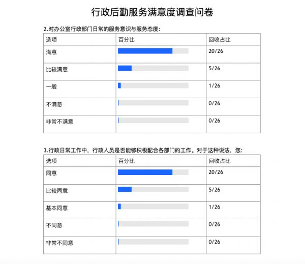 在 Word文档中,题目标题、表格条形图等数据、可视化统计图、以及详细数据都会呈现在word文档上,让你快速做成报告。
