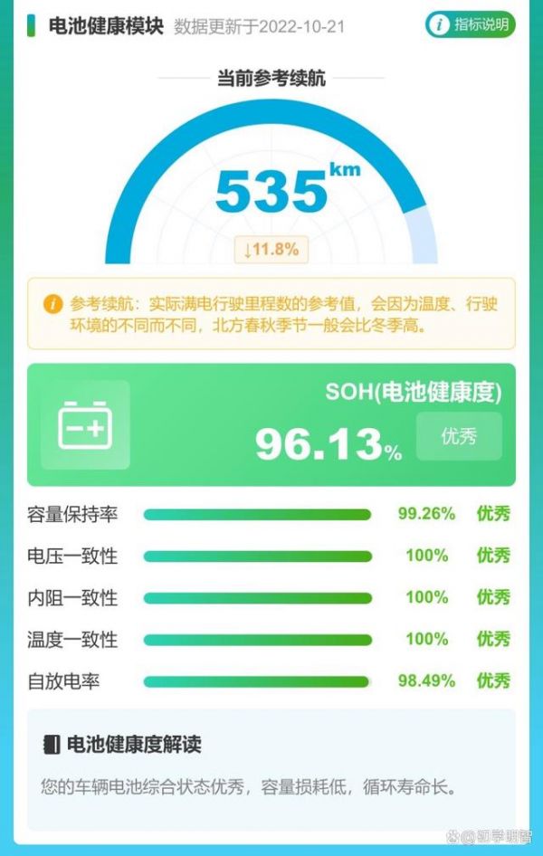 个别汽车品牌支持通过客服或APP查询电池循环次数、健康度(SOH)。