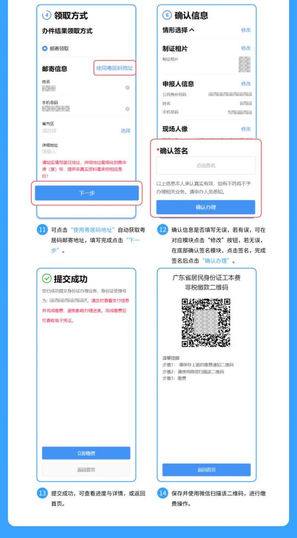 注:“粤居码”申办身份证暂时只适用广东省内户籍居民;外市户籍居民通过粤居码申请身份证相关业务后产生的一系列问题请咨询户籍地公安机关。