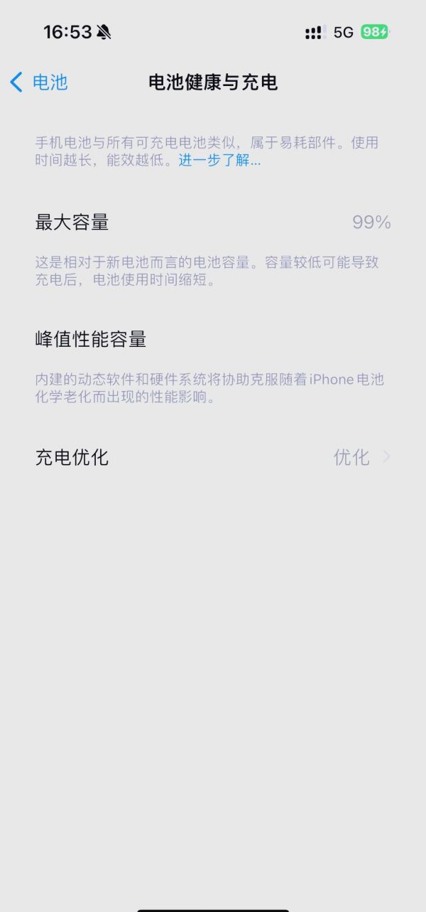 电池健康度是衡量手机电池性能的重要指标,而苹果15 Pro的电池健康度从100%降至99%,虽然看似微小的变化,但可能意味着电池的能效已经开始下降。