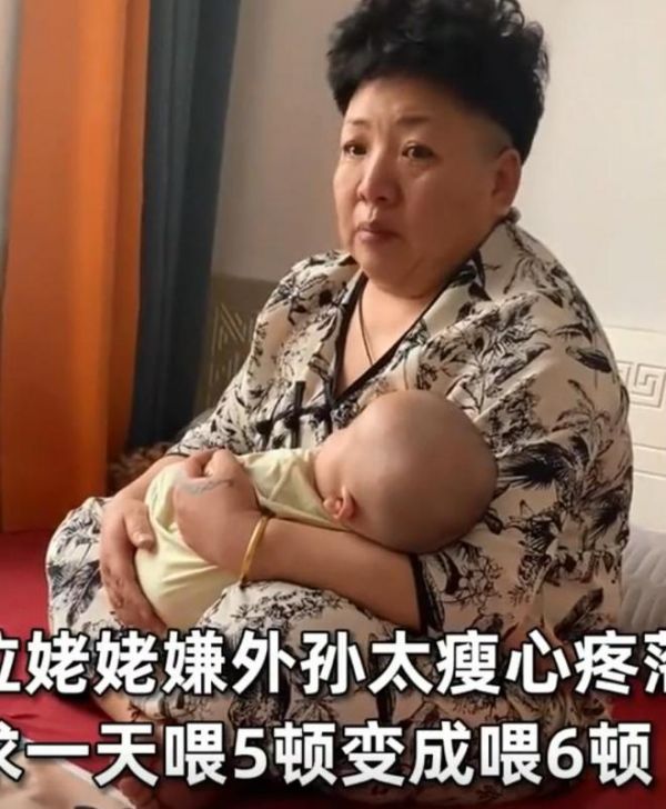 视频中,姥姥的双眼湿润,她满脸担忧地抱着外孙,声音略带颤抖地表示:“孩子这么瘦,怎么能不多吃点呢?只有多吃才能长得健康。”