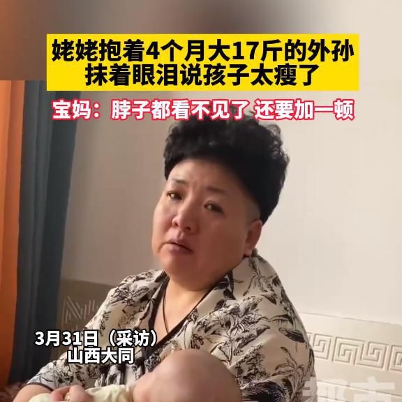姥姥落泪嫌外孙太瘦,宝妈委屈:三个多月已经有17斤还瘦啊