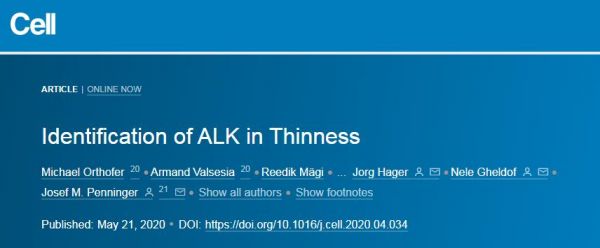 具体来说,研究人员分析了欧洲爱沙尼亚生物银行(Estonian Biobank)的数据,其中包括47102名年龄在20至44岁之间的人。研究人员进行了全基因组关联研究(GWAS),对健康瘦弱人群的DNA样本和临床数据(该人群处于6%BMI最低水平)与体重正常的个体进行比较。结果发现,ALK是可能调节瘦身并在抵抗体重增加方面发挥作用的关键基因。