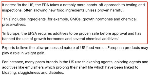 同时有专家也认为,与欧洲产品相比,美国食品的超加工性质可能会导致体重增加。