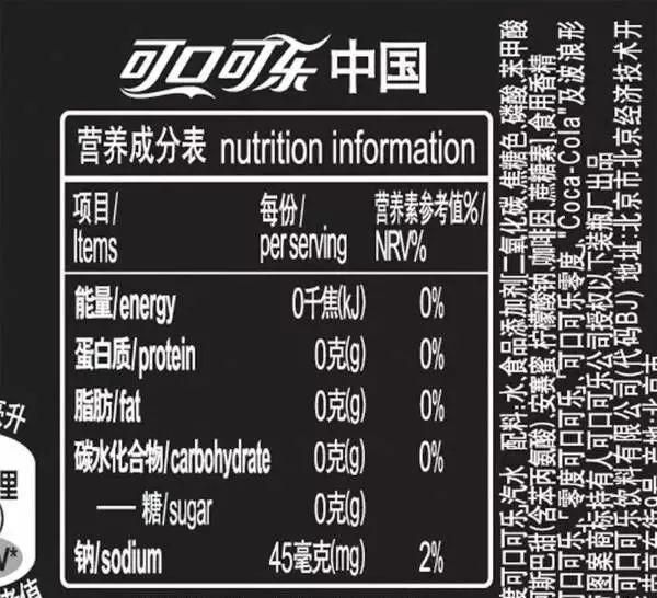 因此,单从营养成分表来看,零度可乐确实是没有热量,也不含糖的。