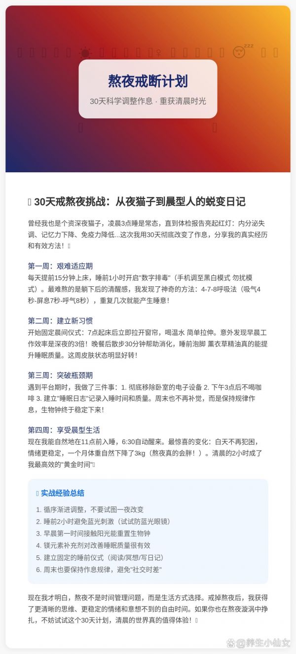 曾经我也是个资深夜猫子,凌晨3点睡是常态...全文
