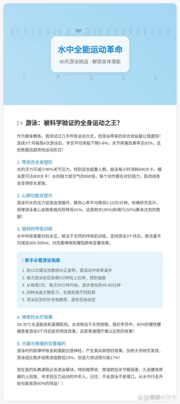 一直以为跑步才是最佳运动?直到我坚持游泳...全文