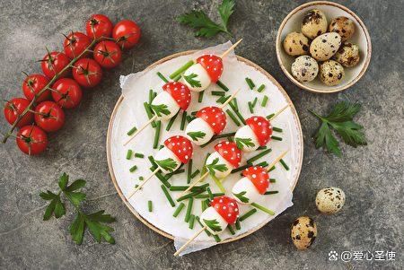 鹌鹑蛋搭配樱桃番茄的开胃菜。(编者提供)