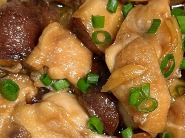 准备食材:鸡肉,香菇,姜丝,葱花。
