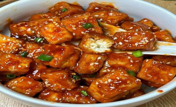 【做法】:将豆腐切成块状备用,锅中加油烧热,将豆腐沾上面粉煎至两面金黄色备用,将番茄酱、白糖、生抽、香醋、盐和适量的水混合搅拌均匀备用,将煎好的豆腐放入锅中翻炒均匀,倒入调好的番茄酱汁烧至入味,撒上熟芝麻即可。
