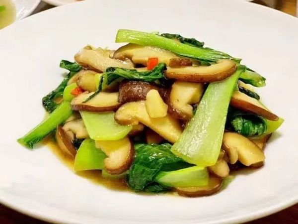 小油菜择洗干净,控水备用;香菇用温水泡发,去蒂,挤干水分,切成小丁备用。