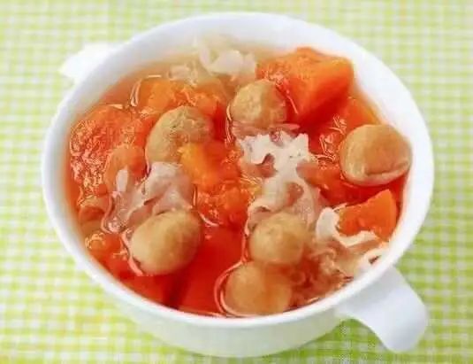 银耳30克,木瓜1个,龙眼300克,冰糖100克,新鲜桂圆,一斤以上靓瓜。