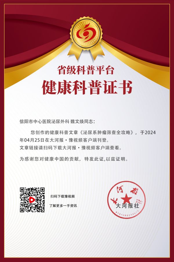 泌尿系肿瘤的早期筛查和诊断对于提高治疗效果至关重要。通过体检与问诊、尿液分析、超声波检查、CT扫描或MRI、尿细胞学检查、血液检查、膀胱镜检查和基因检测等多种方法,可以早期发现泌尿系肿瘤。同时,保持良好的生活习惯和定期进行体检也是预防和早发现泌尿系统肿瘤的重要措施。如果您有任何不适症状,应及时就医,接受专业检查,明确病因,并在医生指导下进行积极治疗。(信阳市中心医院 泌尿外科 魏文焕)