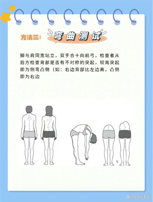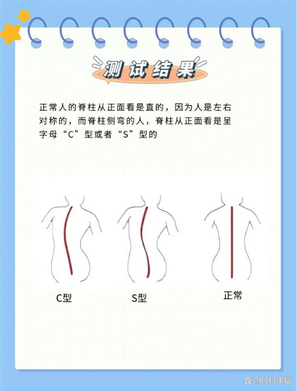 除了上述方法,还可以进行一些简单的自测来初步判断脊柱是否侧弯。例如,站立时观察双眼是否在同一水平线上,背对站立时观察两侧肩线是否对称,以及观察腰际线和臀线是否对称等。如果出现明显的不对称或异常,可能提示脊柱存在侧弯。