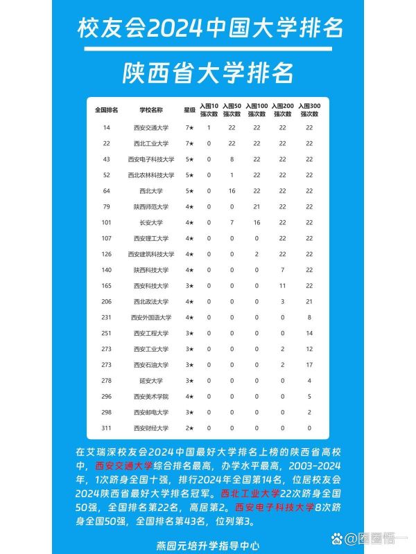 校友会2024陕西省大学排名 在艾瑞深校...全文