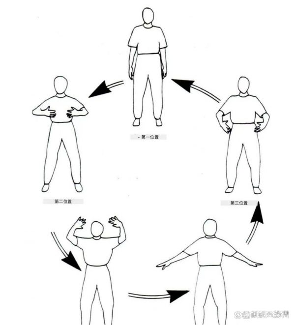 - 双肩放松下沉,手臂像环抱大球,肘下坠,掌心朝向身体