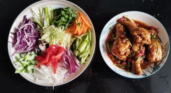一份拳头大小的凉拌菜或水煮菜,营养丰富。