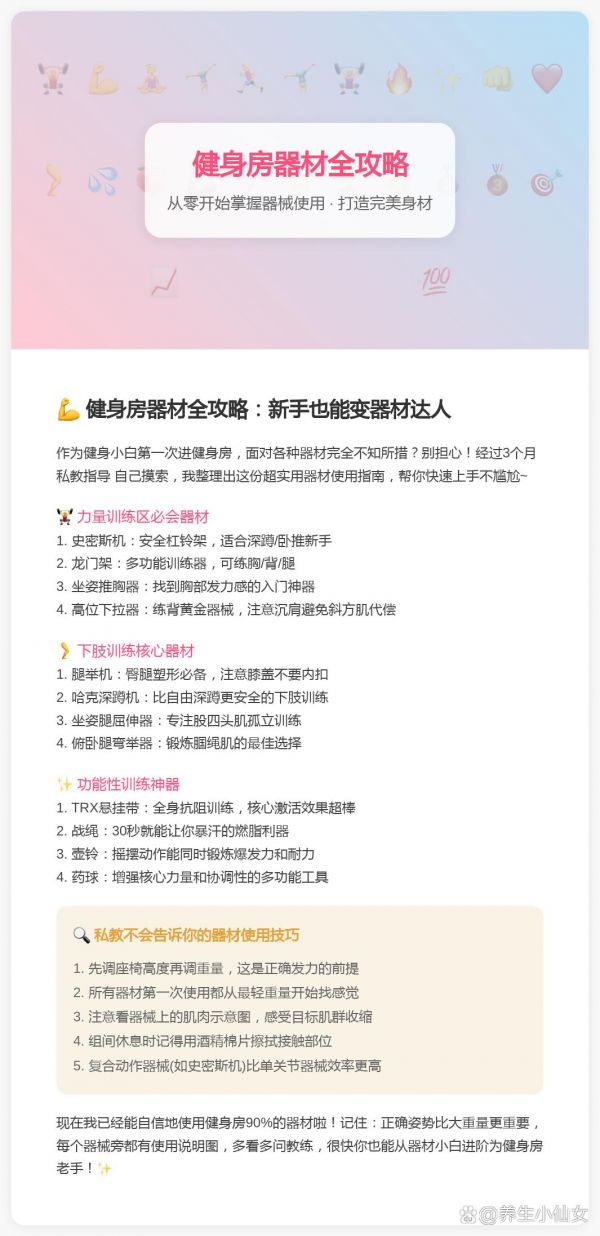 第一次进健身房看到各种器材就懵了?别担心...全文