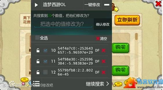 改灵魂也挺简单的,首先打开造梦西游ol修改器,进游戏直接点搜索,然后自动匹配,然后去小仙女,也就是神秘店铺(必须有几万灵魂)直接购买材料买了就打开造梦西游ol修改器搜索有变化,然后出来随便走动下在搜索无变化,在购买材料搜索有变化,在出来走动下搜索无变化。这样搜索几次。结果出现几十个数据,找到是负数的数据如图,把他们减少一个0或者2个0也行。灵魂就变成亿,还有包括材料也是变成了亿,这就是改物品的方法了。