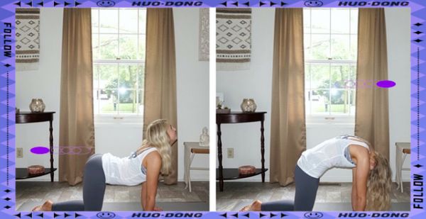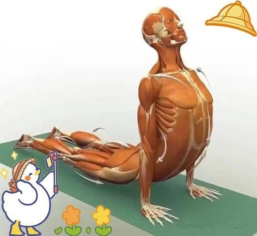 这个动作通过下图的对比展示,主要聚焦于背部的韧带拉伸以及腰椎的灵活性锻炼。对于初学者而言,它是一个极佳的选择,能够帮助他们舒缓背部僵硬。