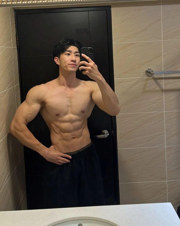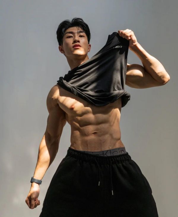 这位台湾健美模特是典型的倒三角身材,穿衣显瘦,脱衣有肉,日常拍摄中他经常会展示出自己最佳的肌肉状态。