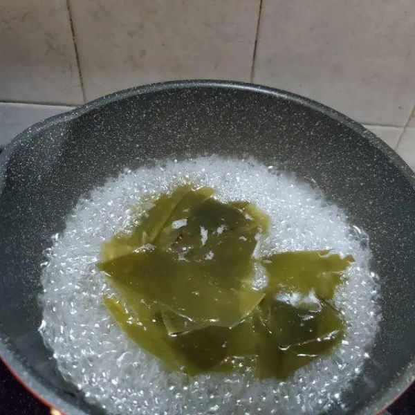 加盐焯水:在焯水的水中加入一小勺食盐,能提升海带的口感,使其更加爽脆。