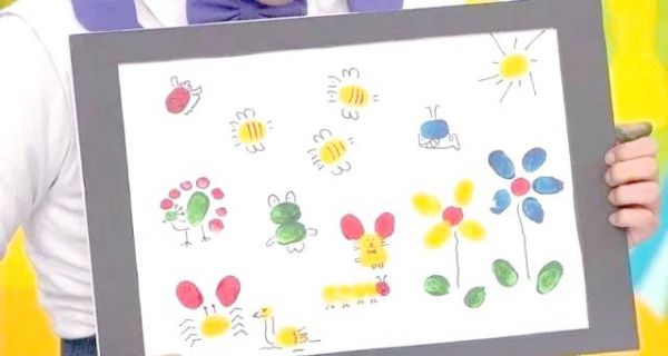 首先,用手指轻轻蘸取适量的黄色颜料,在白纸上按压,形成蜜蜂的身体轮廓。