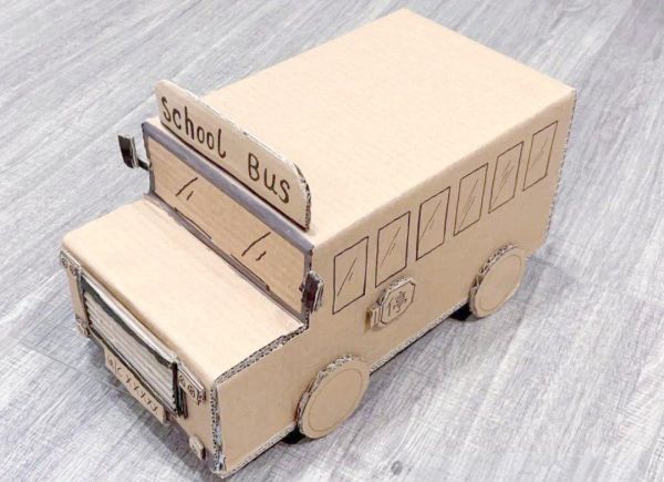 在纸盒的一侧挖出一个方形的孔,作为驾驶室。