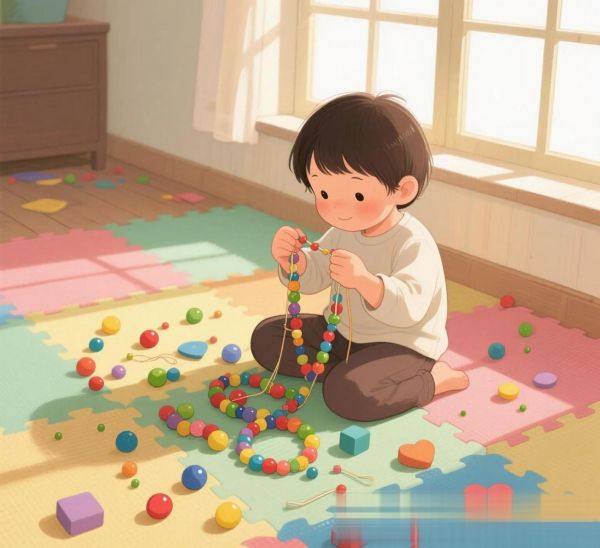 还有穿珠子,不仅能培养宝宝专注力和手眼协调,妈妈们还可以在这基础上培养宝宝的逻辑能力。给宝宝买些颜色不同的珠子,让宝宝按“一个红一个绿,一个红一个绿”这样的顺序穿,训练宝宝按颜色排序。