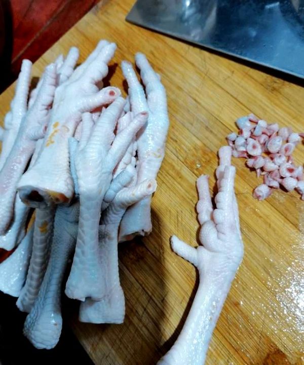 将冷冻的鸡爪置入冷水中解冻,待其完全解冻后进行修剪,去除指甲。同时,将红枣和枸杞彻底清洗干净,并去核处理。鸡爪需焯烫以去除腥味,然后用冷水浸泡,提升口感。