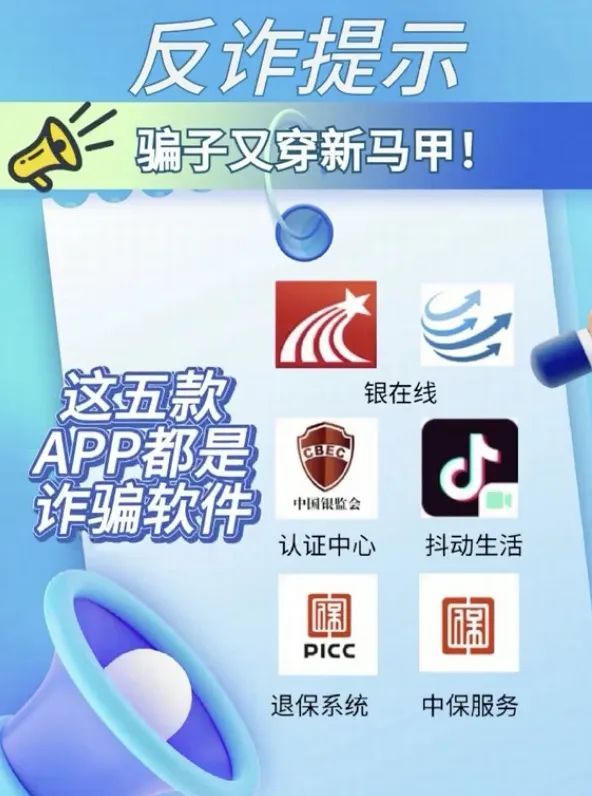 除了以上骗术须警惕,诈骗软件又有新变种。以下五款App都是诈骗软件,请您: