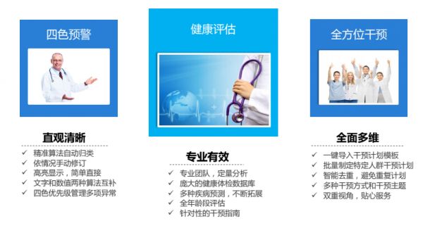 用来支持健康管理师对体检者开展各种健康管理服务,包括健康档案维护、健康问卷管理、风险评估和疾病分类、健康管理计划制定、在线咨询、随访干预、物联网监测、慢病管理等 。