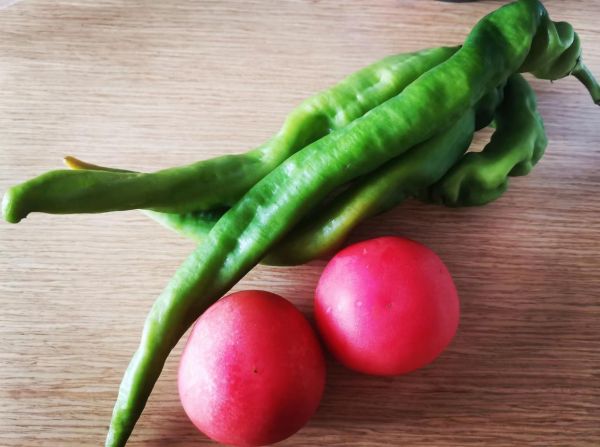 西红柿、尖椒、葱、蒜、生抽、蚝油、食用油、食盐。