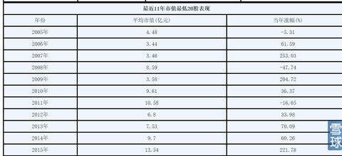 低市值股,近11年来,每年买入市值最低前20个股,大概年回报是80%,这就是高概率,请看具体数据:
